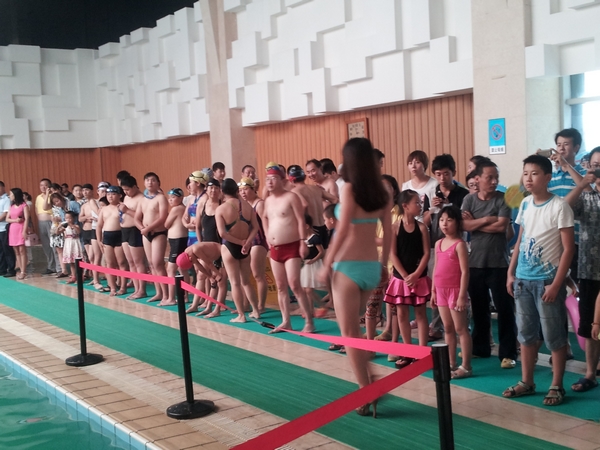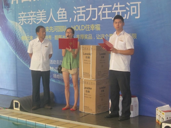 2013年7月20日,沣西新城第二届游泳大赛初赛在先河国际社区拉开序幕,举办了一场别开生面的“水上飞鱼游泳比赛”,吸引众多新老客户齐聚现场,其乐融融的场面好像一场盛大的家庭聚会。参与活动的来宾也许来自各行各业,拥有不同的家庭和人生,却出奇的和谐融洽,让活动当天的现场气氛也变得更加热烈异常。 游泳比赛马上就要开始了,只见队员们个个胸有成竹,弯着腰,抬着头,眼睛望着前方,各自站在自己的泳道前。裁判员一声令响,就听见一声声“扑通!扑通!”的响声,队员们纷纷纵身跃入水中。大家你追我赶,不分胜负。赛场上加油声此起彼伏。两圈后,眼看5号队员胜券在握了,谁知在转弯时,6号队员紧追不舍,在观众们的呐喊声中,超出了5号队员。 值得一提的是本次比赛,有一位名叫孙佳乐的选手,他的坚持不懈永不放弃比赛的精神感动全场,在他体力不支的时候,他还是坚持游完比赛全程。在场的每一位观众都为他的精神所打动,为他加油! 本次比赛邀请到了美人鱼在前来表演,让在场的观众零距离童话与优雅,还有4位美丽的模特带来的维多利亚宝贝泳装秀,他们的表演都吸引到场的所有观众的眼球! 虽然不是职业的游泳比赛,但大家对此所投入的认真程度不亚于参加正式比赛。在泳池激烈的竞争中,虽无搏击选手出招时热血沸腾的呐喊,激荡的浪花、激烈的速进却代表着无言的激情,池边观众更是不时传来叫好声,选手们互不相让,都展现出专业体育精神的激情和伟大。在切磋技艺之外,更重要的是大家享受了一番先河国际恒温泳池的畅快与舒适,对此体验大家都表示出满意和认可。在初赛后的合影中,无论比赛输赢如何,每个选手脸上都洋溢着微笑。
