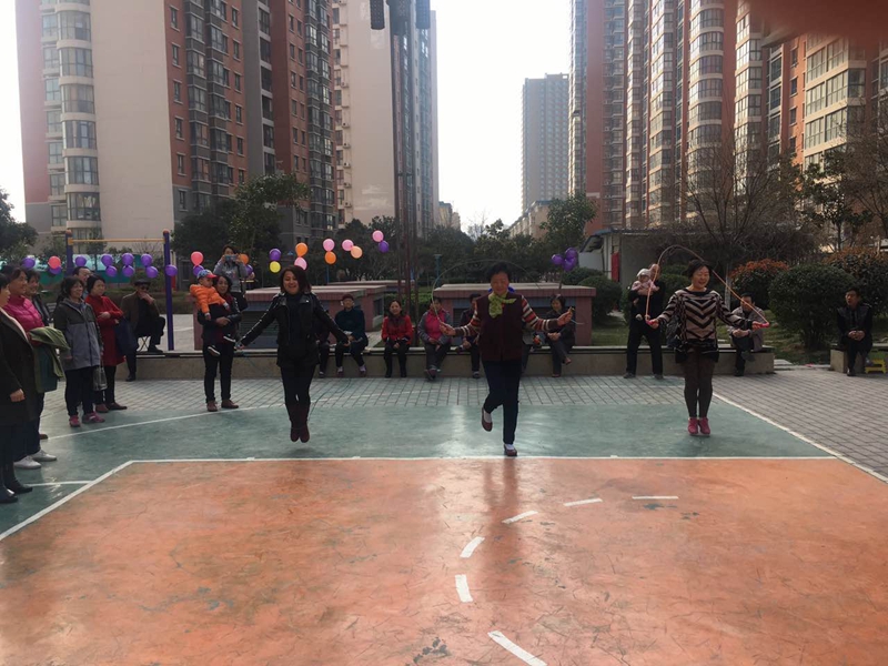 3月正值春回大地、万物复苏之际。3月8号当天,华宇蓝郡物业服务中心在小区里举办了一场“三八妇女”运动会。比赛内容有:跳绳比赛、踢毽子比赛、拔河比赛。业主们都积极踊跃报名,参与到运动带给她们的快乐。 ![]()